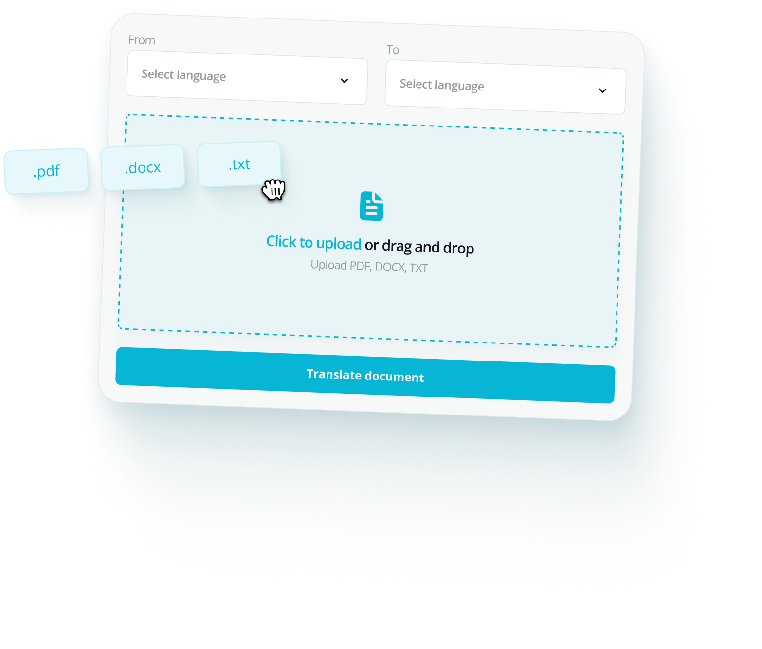 Drag and drop any file into the platform. Supported formats include PDF, DOCX and TXT